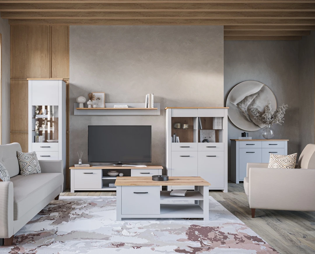 Sienna Niska staklena vitrina je praktičan i moderan komad nameštaja koji će savršeno dopuniti vašu dnevnu sobu. Dimenzije vitrine su 109x42x150 cm, poseduje šest polica, što je idealno za odlaganje i izlaganje vaših predmeta. Stakleni paneli na vratima vitrine doprinose prozračnosti prostorije. Izrađena je od kvalitetnih materijala koji obezbeđuju dugotrajnost i otpornost na oštećenja.KarakteristikeKonstrukcija vitrine napravljene od univera debljine 18mm, obezbediće maksimalnu stabilnost i izdržljivost elementaUsporivači na vitrini omogućavaju tiho i lagano zatvaranje vrata, čime se sprečava oštećenje vrata i šarki, pored toga doprinosi dužem veku trajanja elementaFioka se može potpuno izvući zahvaljujući teleskopskom mehanizmu, što omogućava lak pristup i preglednost sadržaja fiokeRučice od metala su izdržljive i otporne na habanje i pucanje