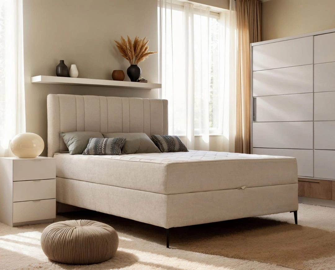 Ležaj MINT odlikuje lep dizajn, odličan kvalitet izrade i visok nivo udobnosti za spavanje. Praktičan je komad nameštaja koji se lako uklapa u svaki enterijer.Njegove glavne karakteristike su udoban dušek na džepičastom jezgru i funkcionalna, jednodelna kutija za posteljinu velike zapremine, idealna za odlaganje posteljine, garderobe ili lakših stvari.Dostupan je u dve lagerske boje – bež i siva. Može se naručiti i u boji po želji, u štofovima Wind i Orinoco.