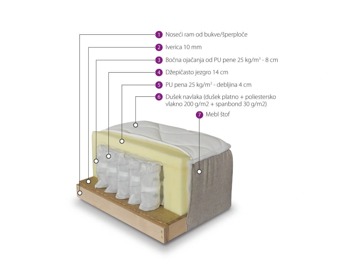 | Materijal ispune | Džepičasto jezgro |