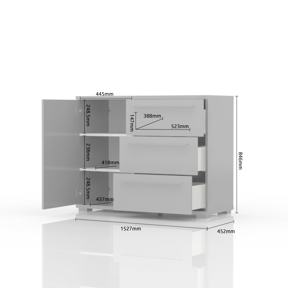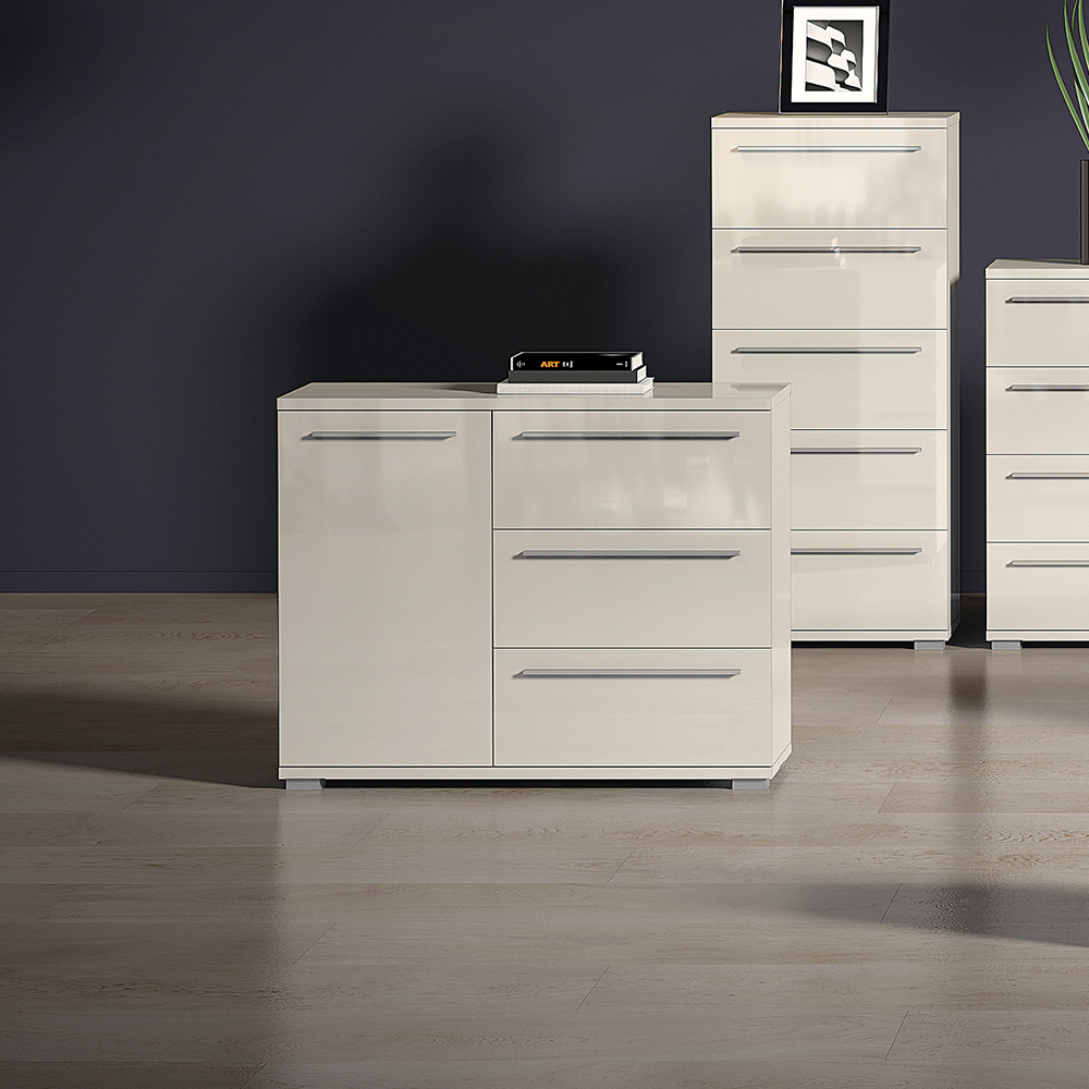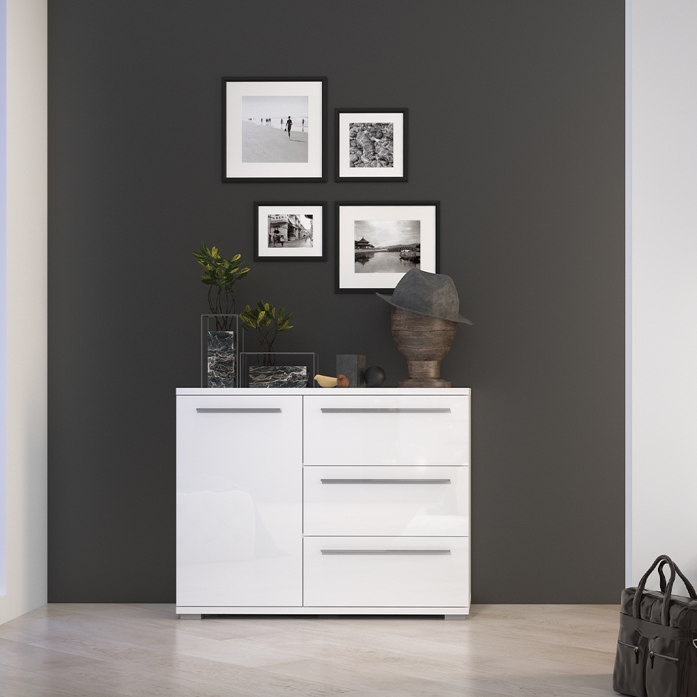 Komoda sa jednim krilom i tri fioke iz kolekcije nameštaja PIANO.