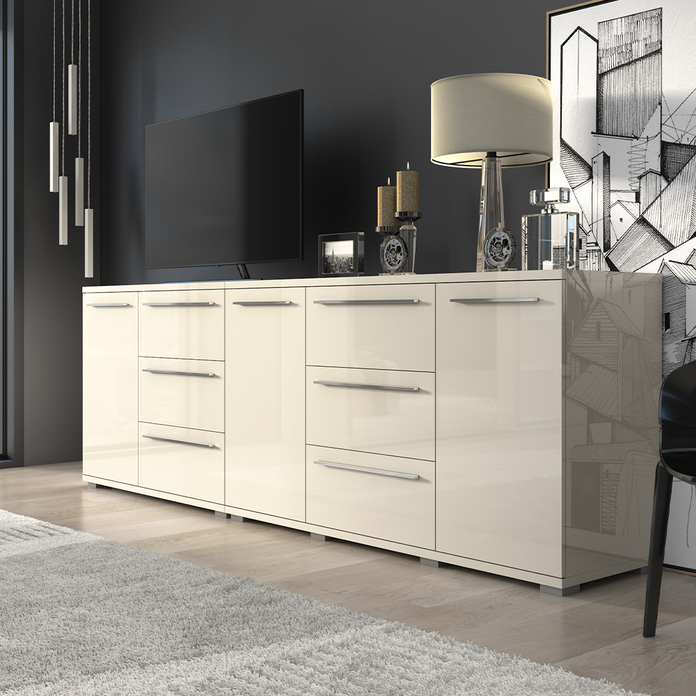 - frontovi, bočne strane i plafon elementa lakirani su UV lakom u visokom sjaju, u toploj bež ili kristalno beloj boji