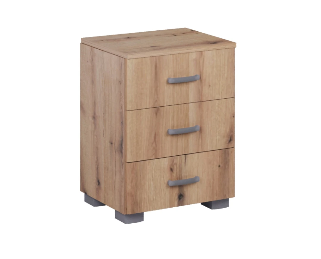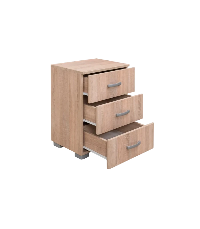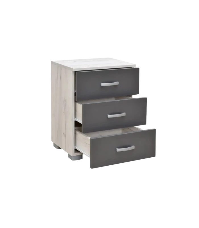Kombinacijom savremenih materijala i minimalističkog dizajna stvoreni su noćni ormarići Matis 3F. Matis 3F noćni ormarići su izrađeni od oplemenjenog univera debljine 18mm, sadrže tri fioke na metalnim klizačima i sa metalnim ručkama. Pored upotrebe u spavaćim sobama, noćni ormarići Matis 3F mogu se koristiti kao mini komode u dečijim sobama i kancelarijama.