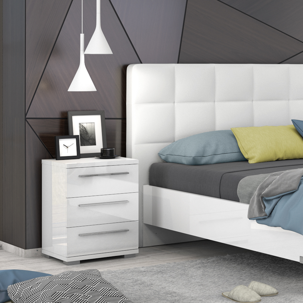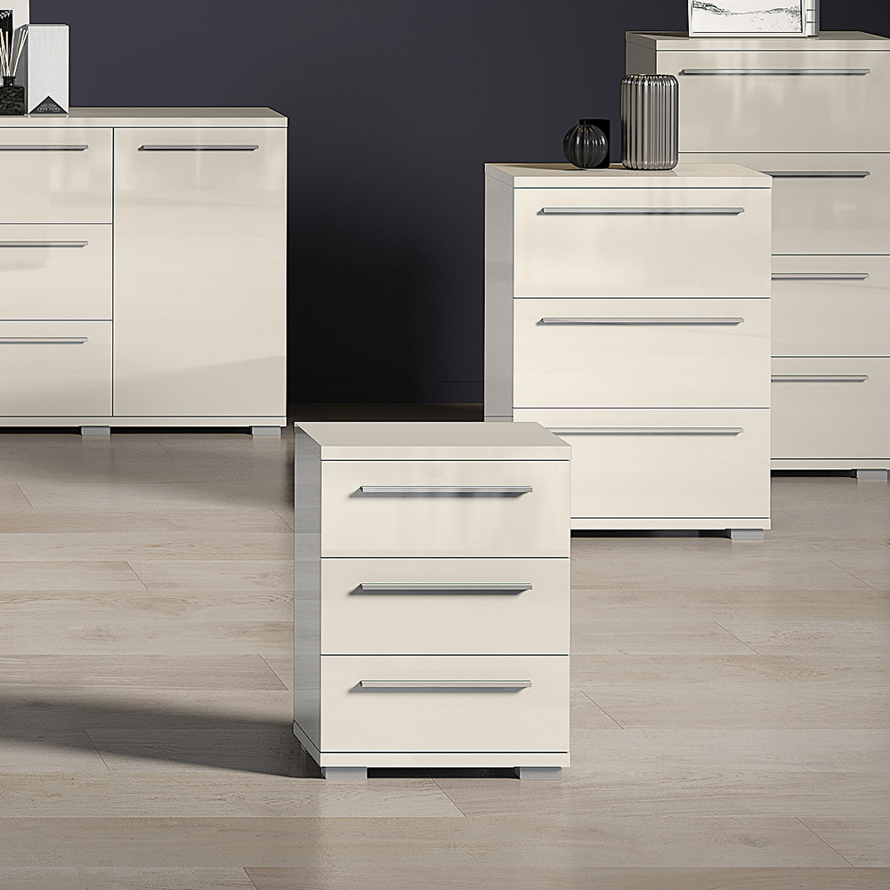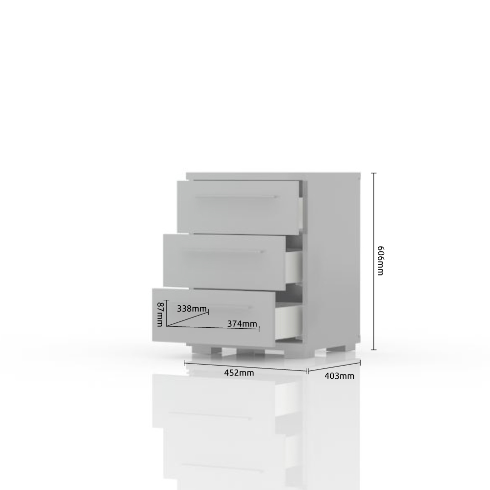 Noćni stočić sa tri fioke, dizajnirane geometrijske forme iz kolekcije nameštaja PIANO.
