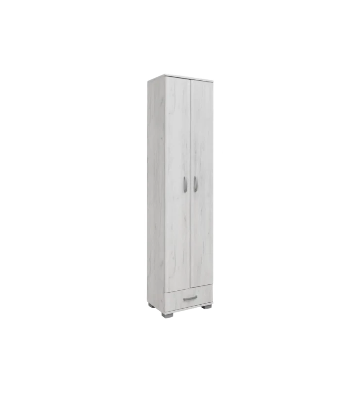 Predsoblje Apolon PA1 je deo porodice predsoblja APOLON, modernog dizajna, idealnih dimenzija. Izrađen od kvalitetnog univera debljine 18mm i dvoja vrata od po 25cm sa soft obradom ivica sa metalnim ručkama. Ovaj deo sadrži jednu vešalicu za odeću i poprečne police koje se mogu pomerati na određenu visinu po vašim potrebama, kao i fioku za odlaganje stvari na dnu samog elementa.