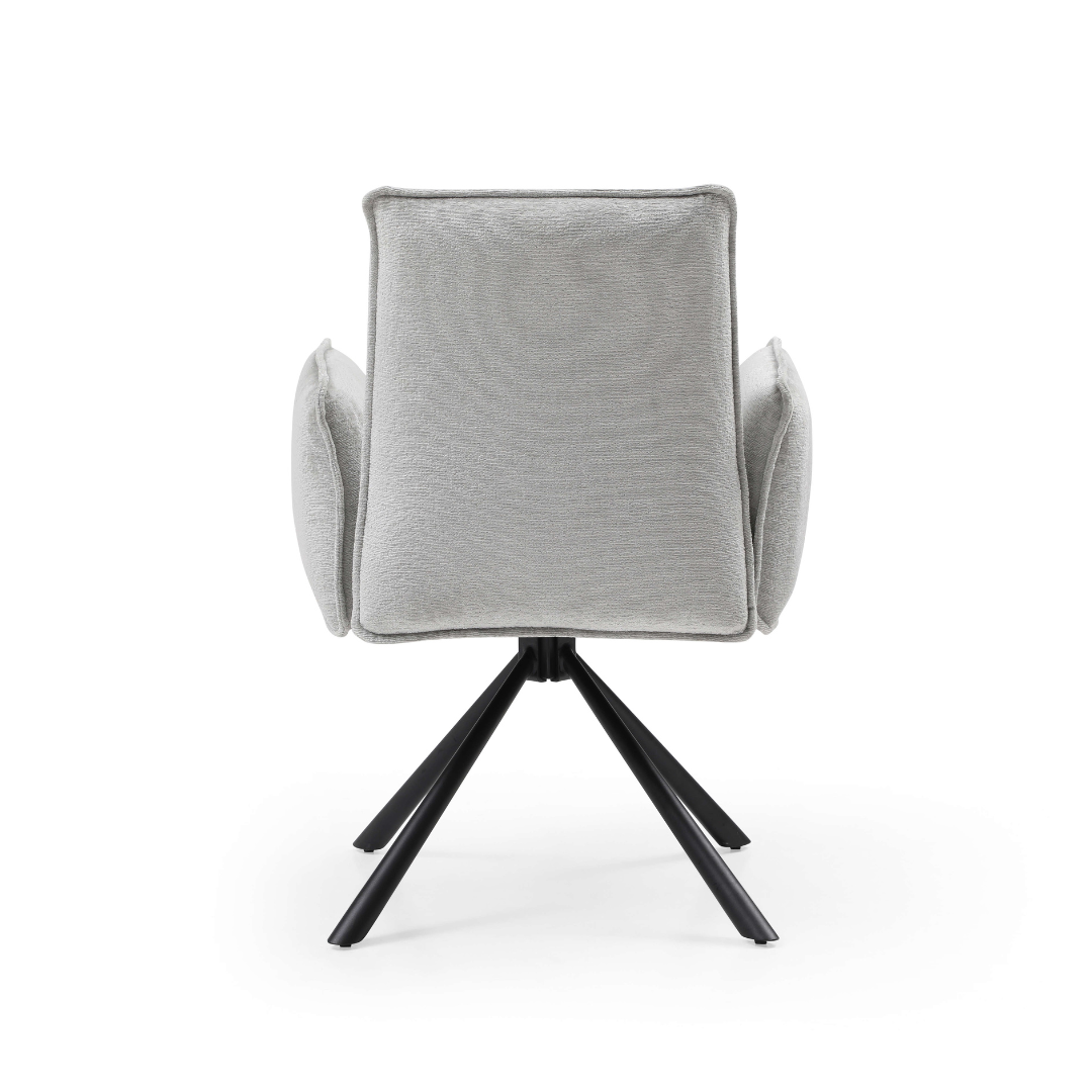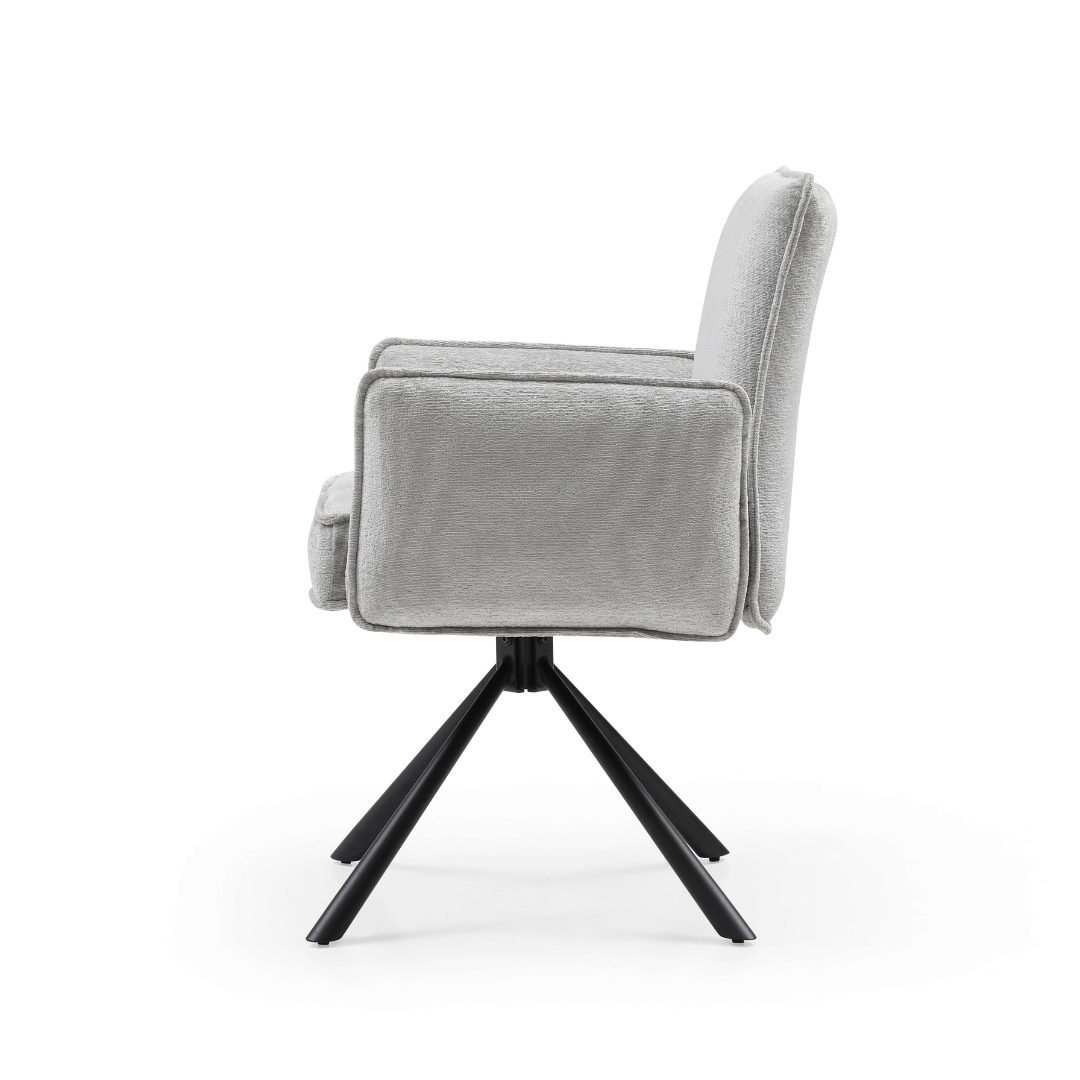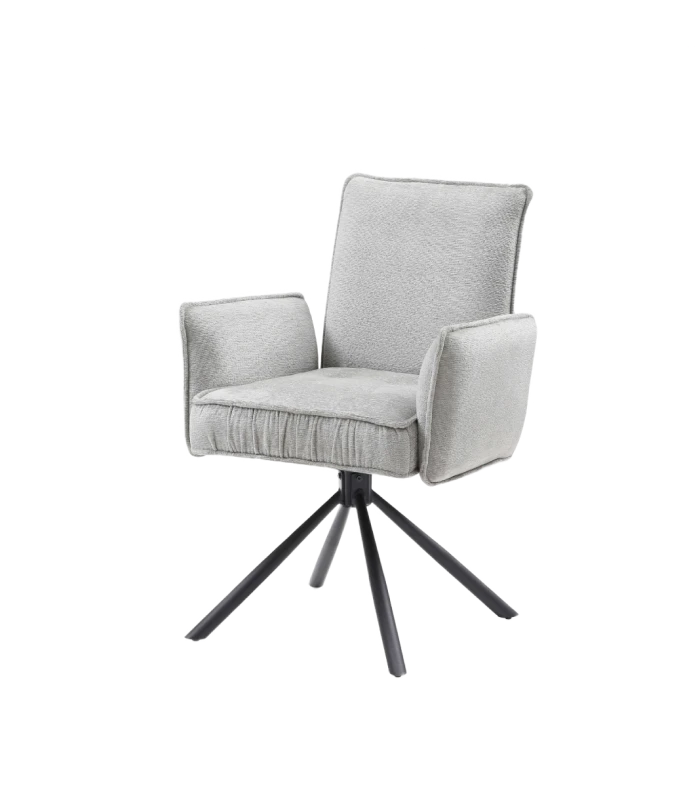 Cela stolicapresvučena je mekom tkaninom. naslonu. Stolica se može rotirati za 180°. Osnova stolice je od metala I lakirana u mat crnoj boji. Maksimalna nosivost stolice je 120 kg.