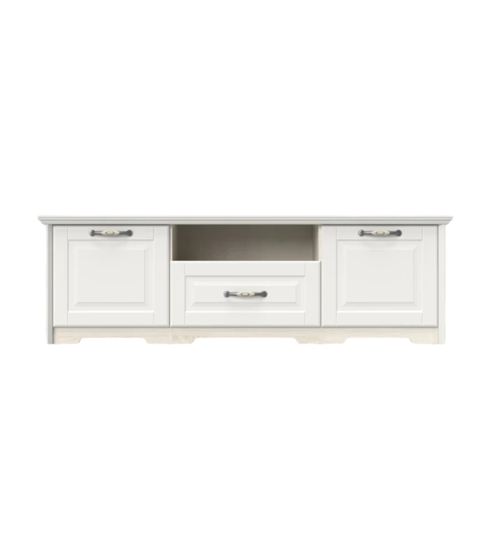 TV sto za dnevnu sobu, iz kolekcije EVERGREEN, sa dva krila, jednom fiokom i jednom otvorenom policom – element nameštaja za ljubitelje klasike.