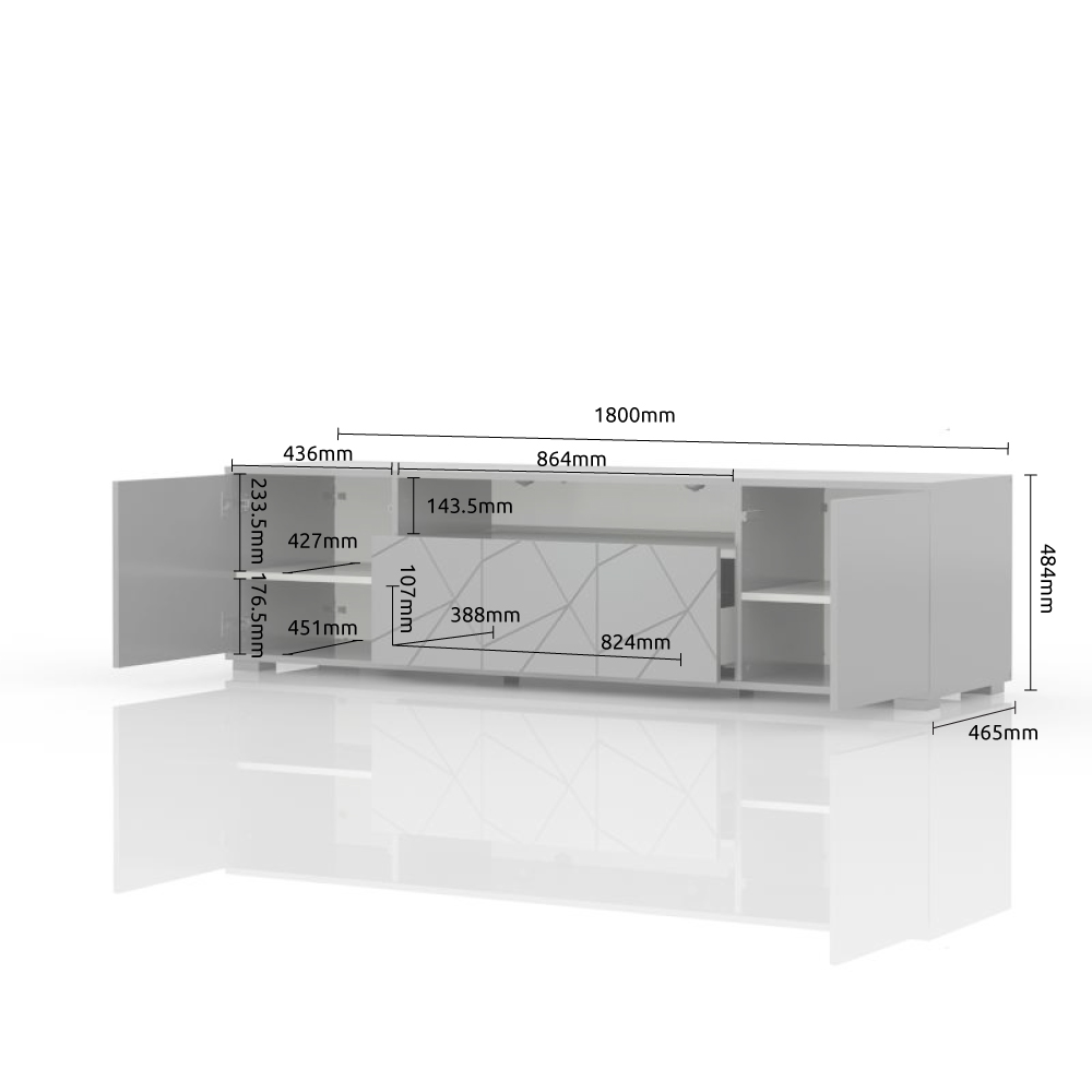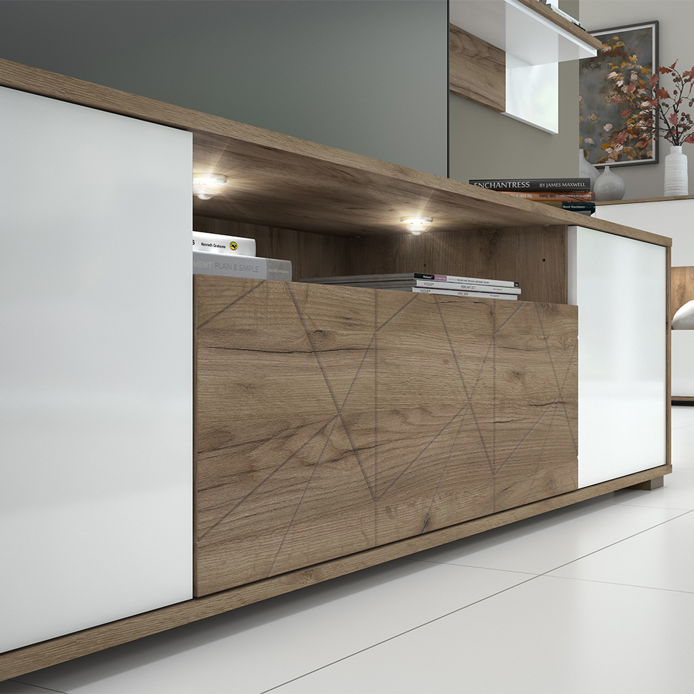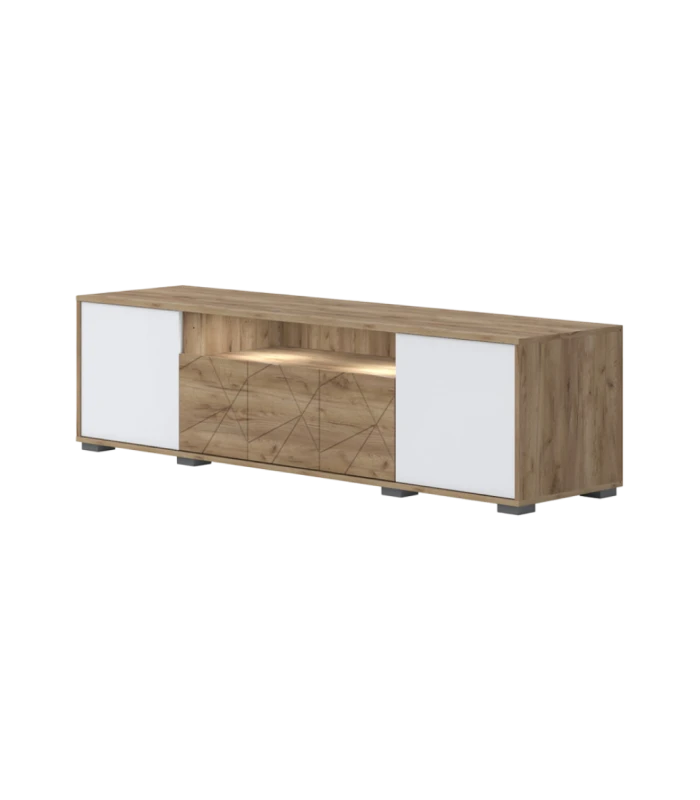 TV sto za dnevnu sobu, iz kolekcije STELA, sa dva krila, otvorenom policom i fiokom, bez ručica, u skladu sa novim trendovima oblikovanja nameštaja