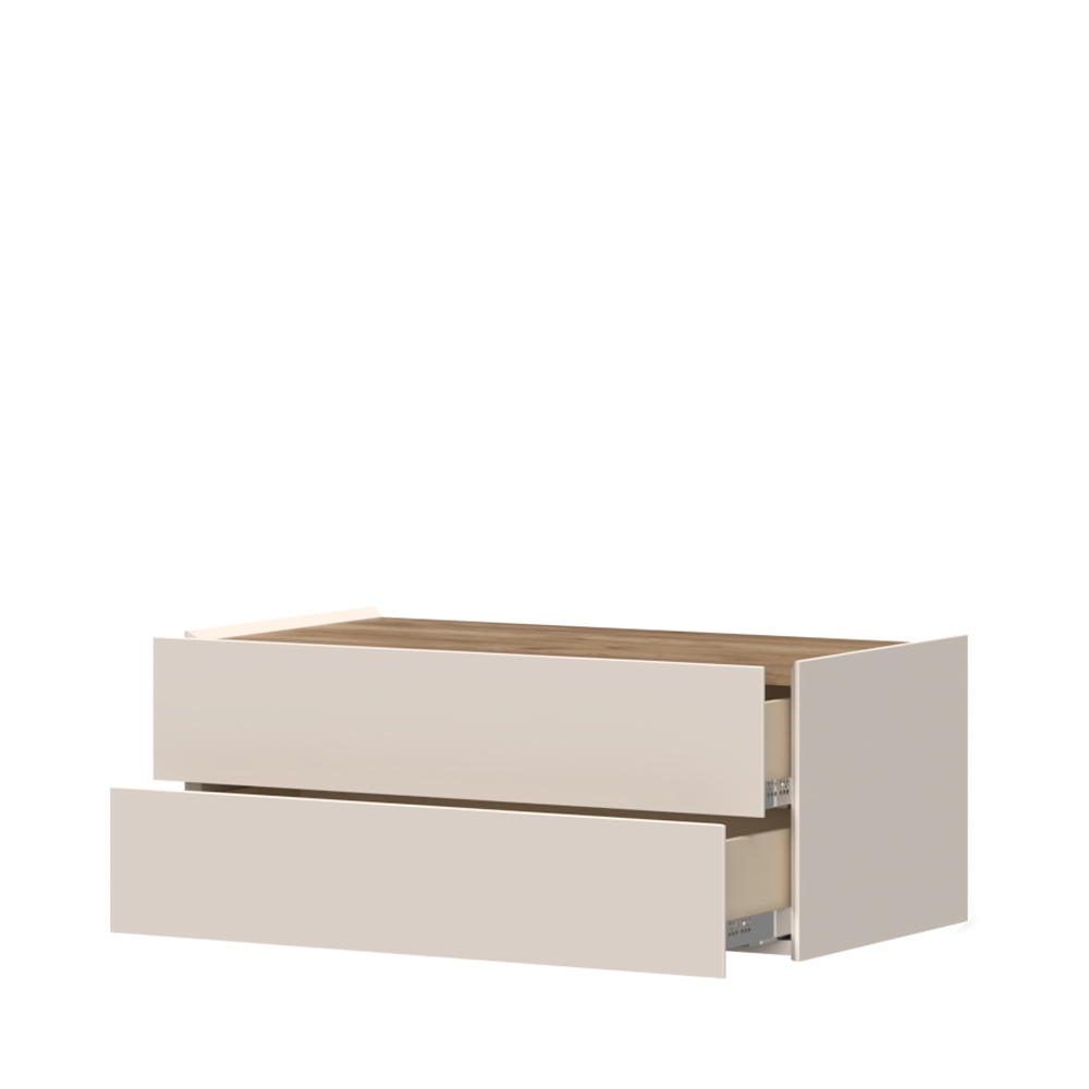 • bočne strane i frontovi fioka izrađeni od medijapana i obostrano lakirani UV lakom sa soft mat efektom u boji kašmira